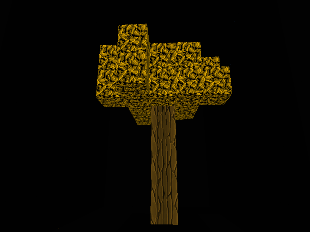 Trees can be found all over normal worlds on the surface. They come in 4 colors: Red leaves, yellow leaves, green leaves and a mix of green and yellow leaves. Trees are at an average of 6-9 blocks high. They spawn naturally in Normal Worlds and are completely burnable. The tops of trees are usually flat.